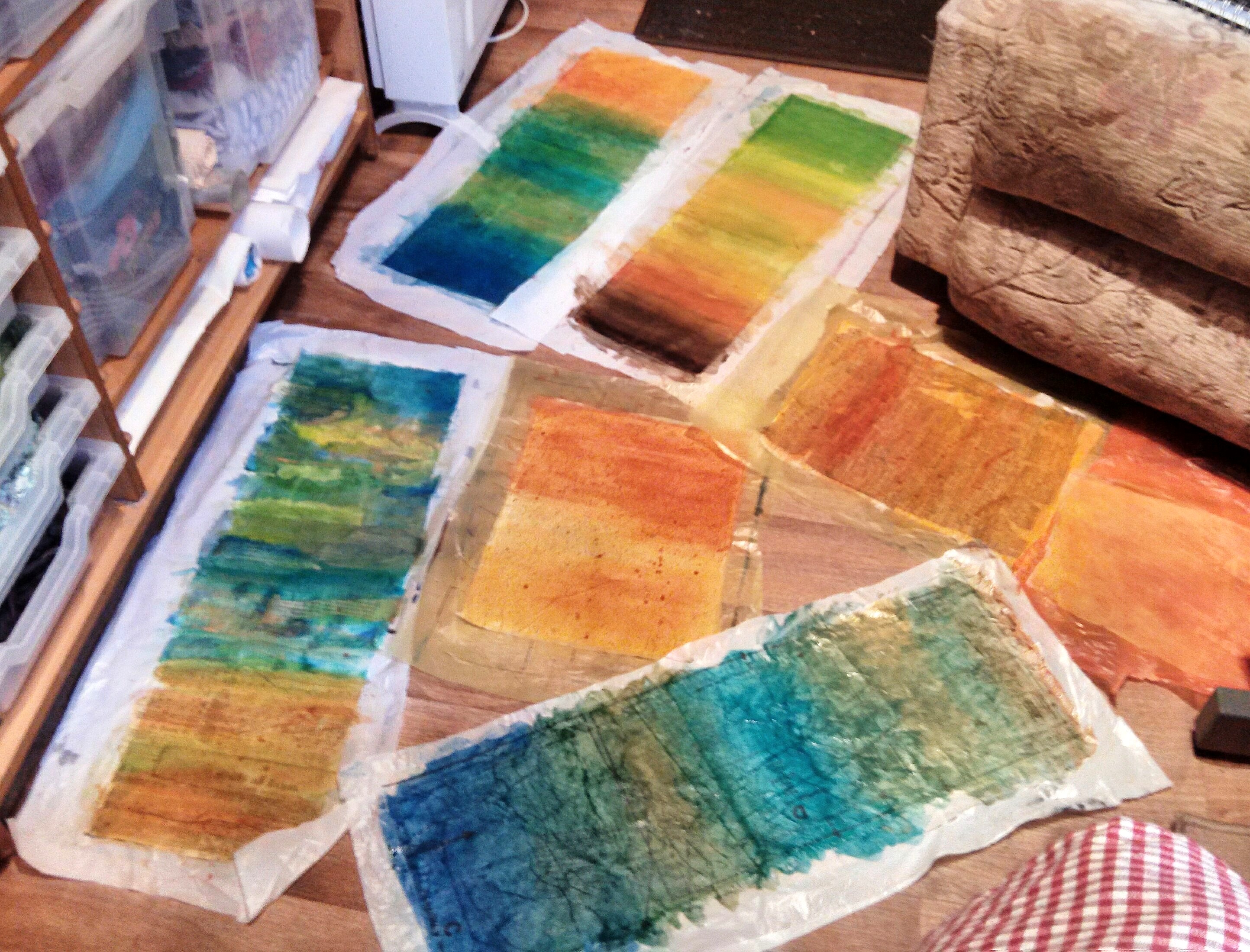 Exploring colours for three panels. Ebb and Flow will be the first piece for ‘Atlantis’, a project representing the universal search for spirit and meaning, from surface to depth. The panels will represent how we ‘enter the water’ as it unexpectedly floods towards us, or as we find ourselves pursuing a retreating tide away from our grasp.
