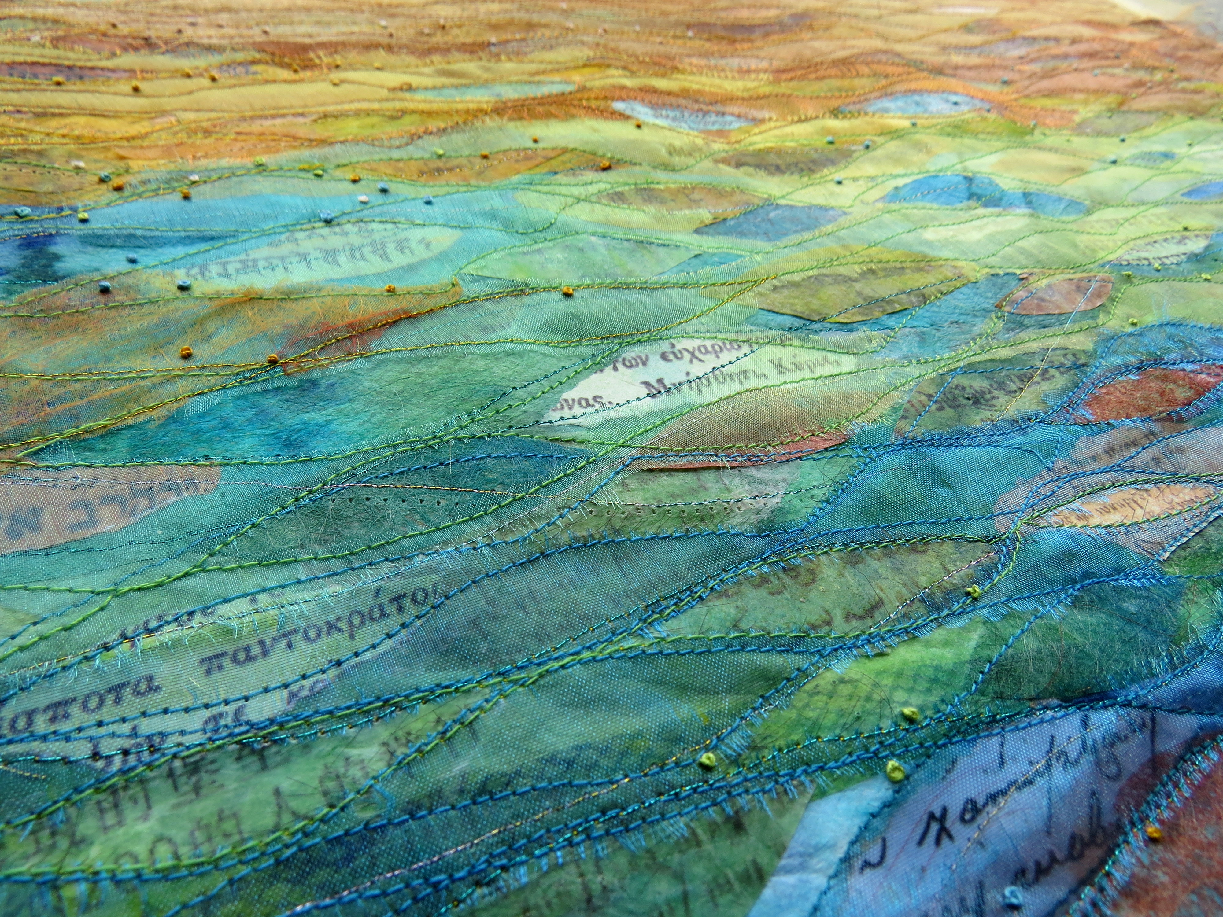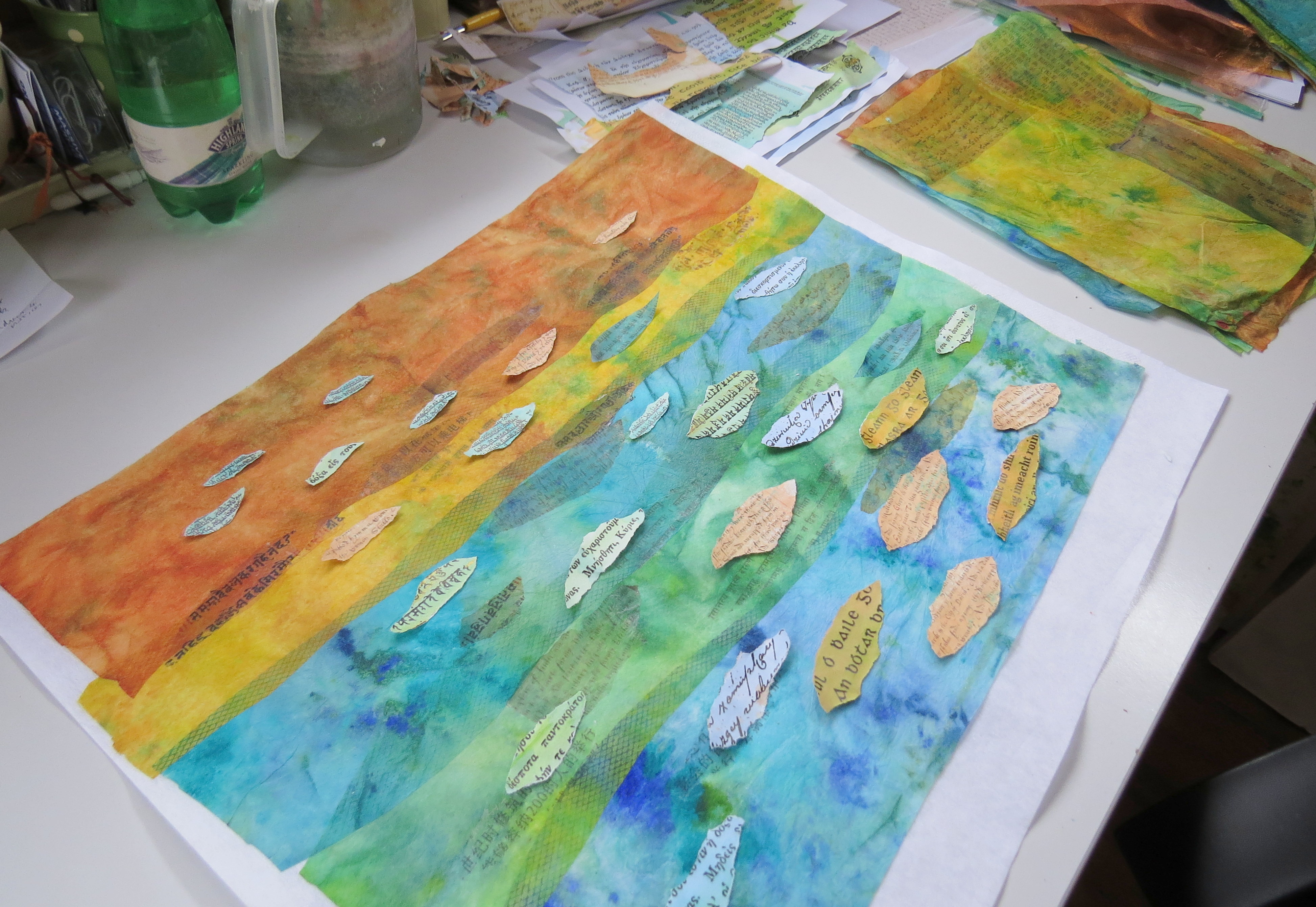 This is the third piece for Atlantis. It is about light dancing on the surface of water, with shapes that you can see but can’t get hold of. The small pieces of script are from languages around the world and scriptures from different faiths. They are revealed by the light and as we cut through the surface of life. Once a friend helped me think about options for the flat piece, I realised that I needed a cube. This reflects my thoughts about the fact that whilst one face is illuminated, other faces on which the light shines are hidden until you choose to look at things from a different point of view. Then you realise that there is truth and goodness in far more than we first see…