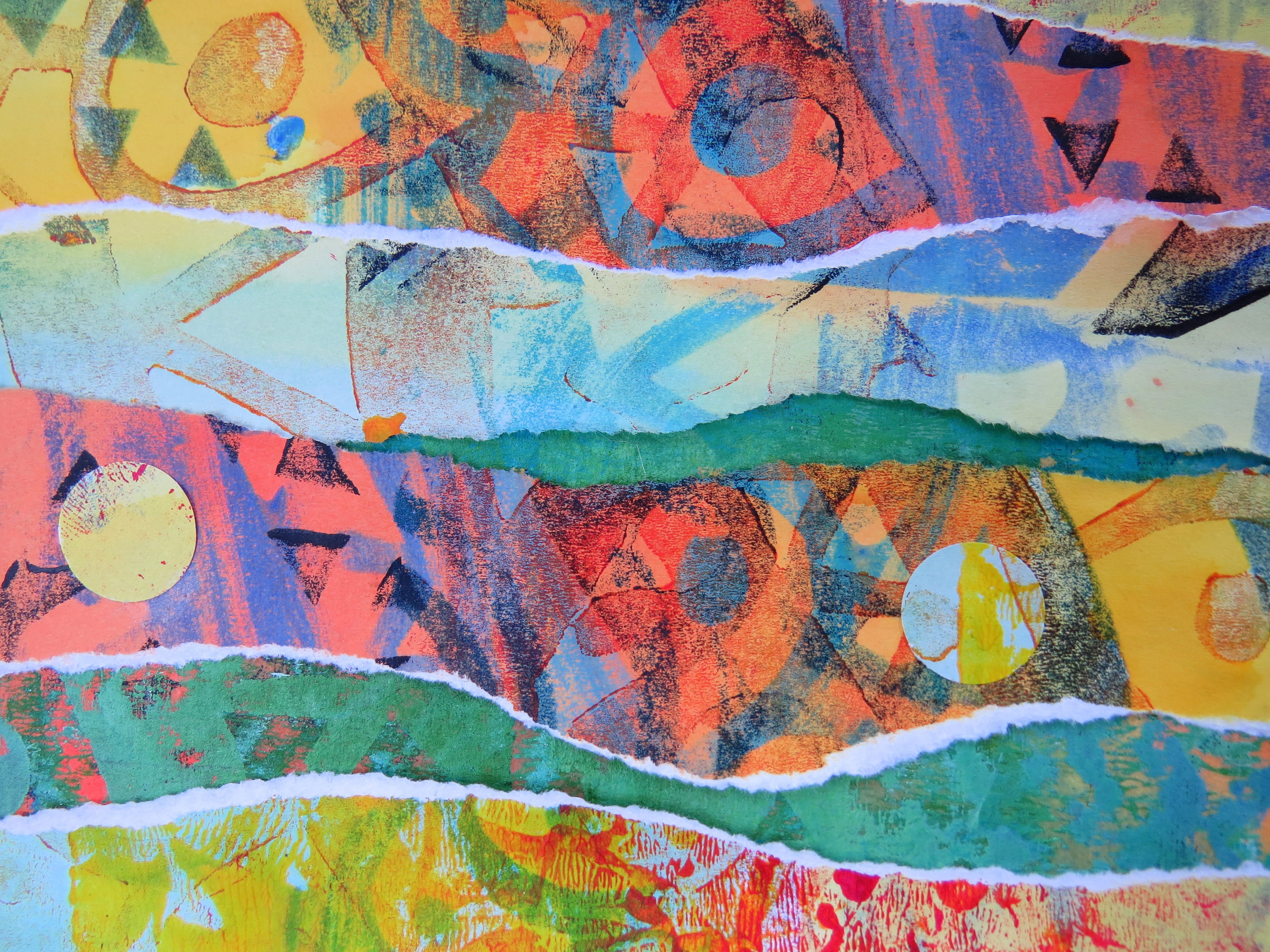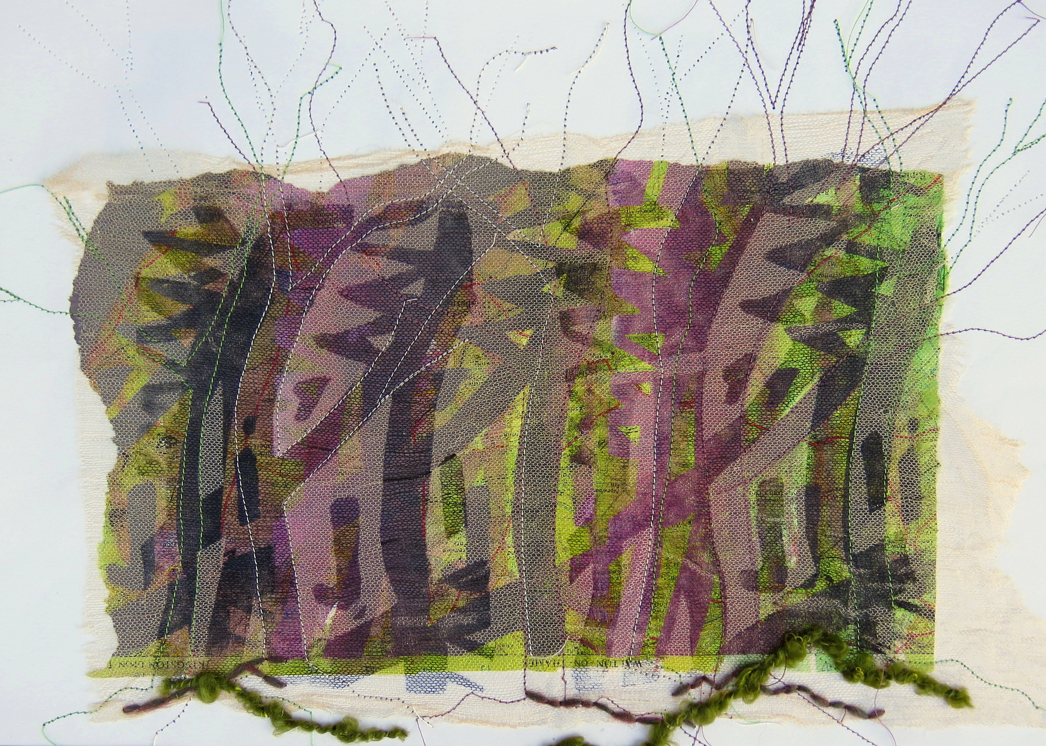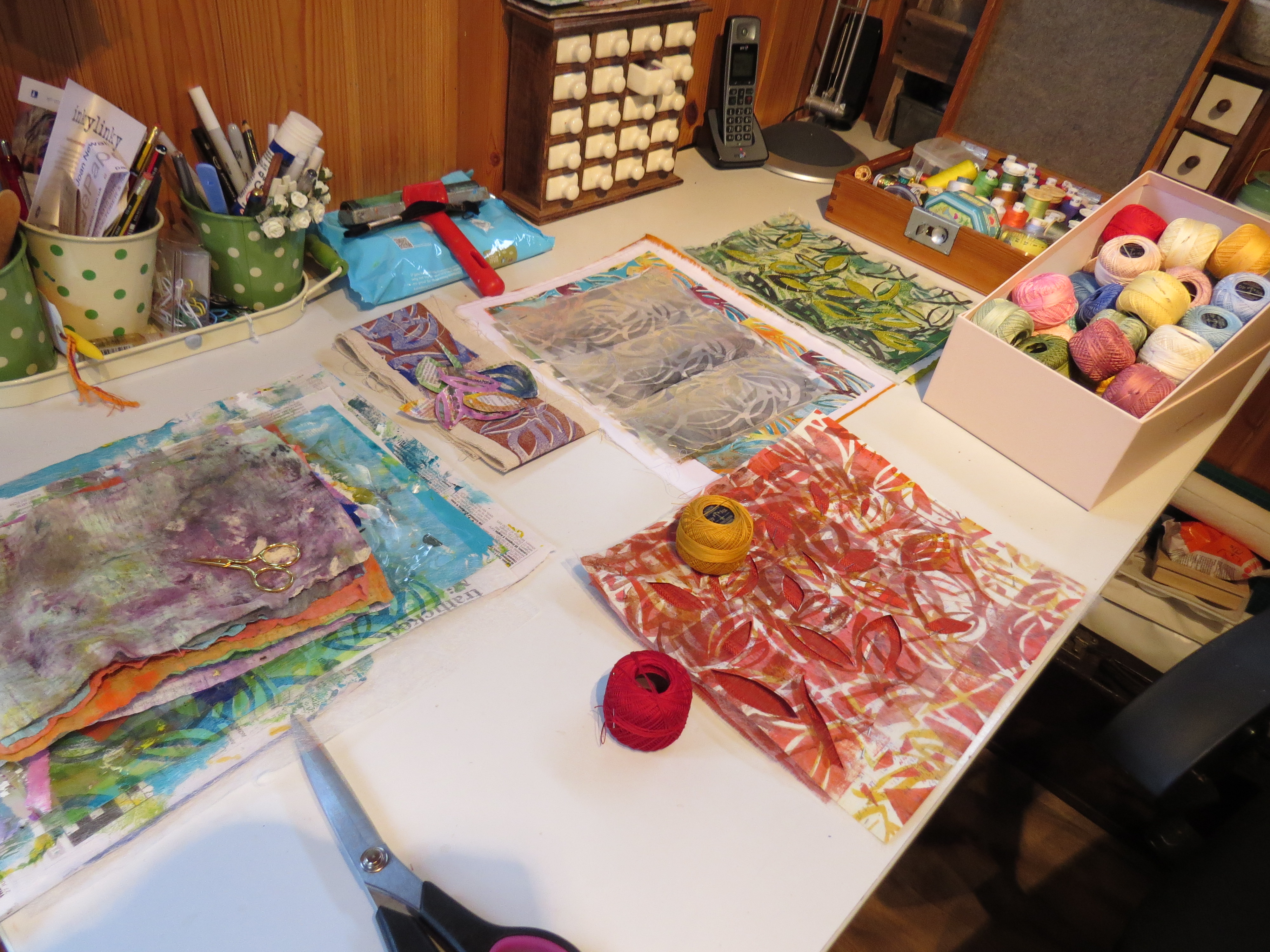 This time we are printing, overprinting, cutting back and stitching and generally experimenting. Having used several block prints, some I love and some are rather restricting and I’m not too sure what to do with the strong design.