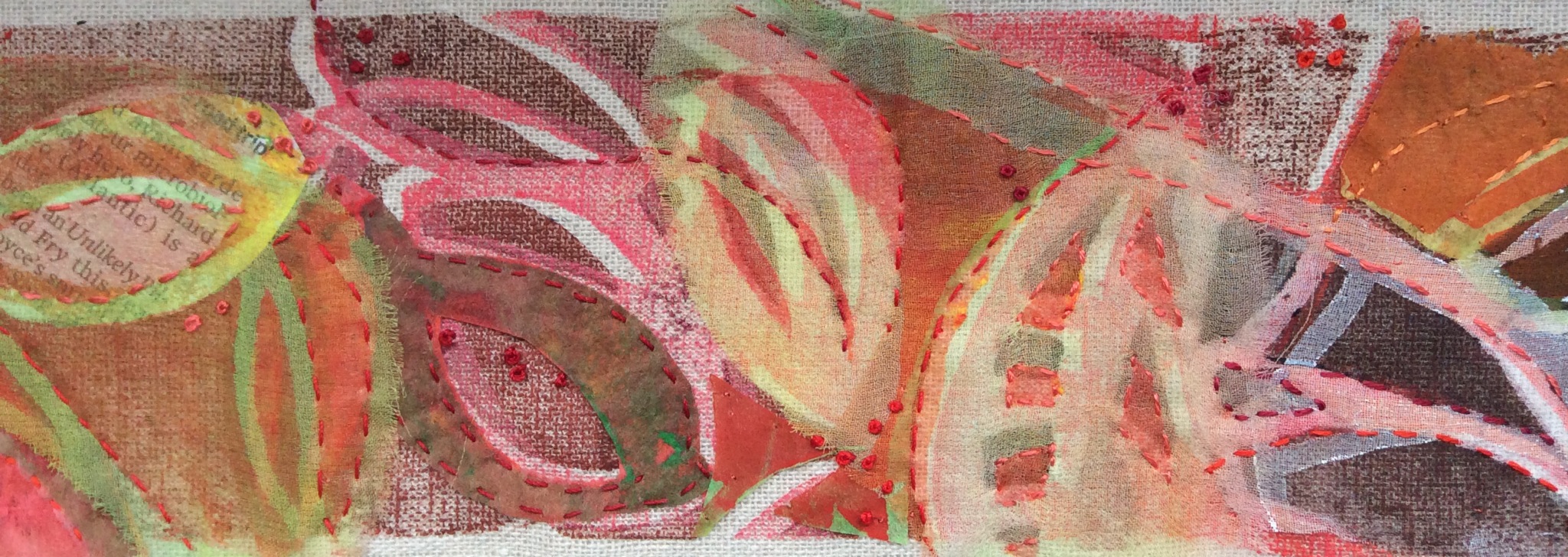 So, having gone through my Pinterest boards and other photos, I have had to admit to celebrating colour rather more than I thought I did. This piece is coming on well, and I’m excited to finish it. I shall hang it down in my love of things vertical.