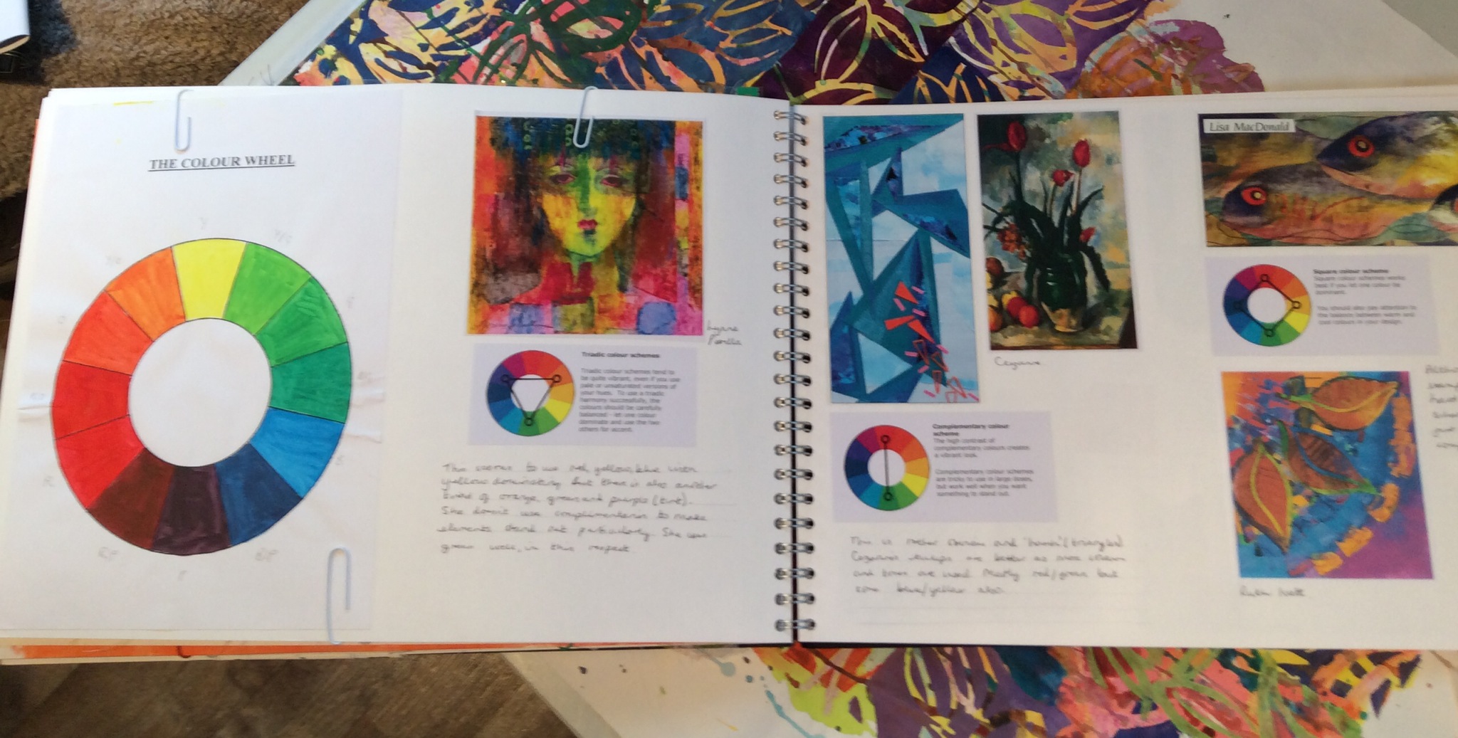 I’ve also been adding to my sketchbook, looking more at colour theory: