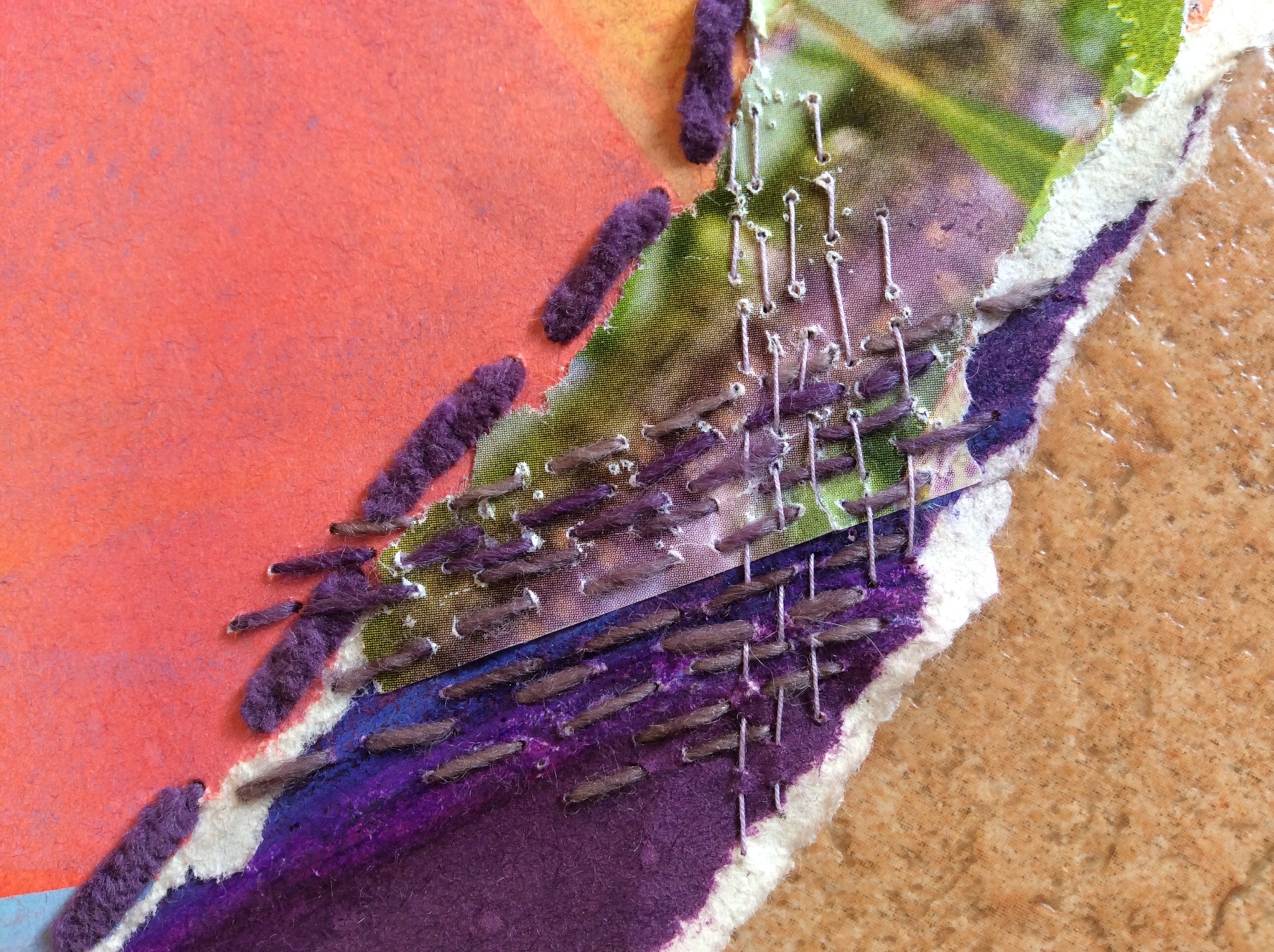 1. This is lovely! Great colors too. How do you manage to hold the paper while hand stitching? I wouldn’t think you would put it in a hoop or scrunch up the extras like you would with fabric.