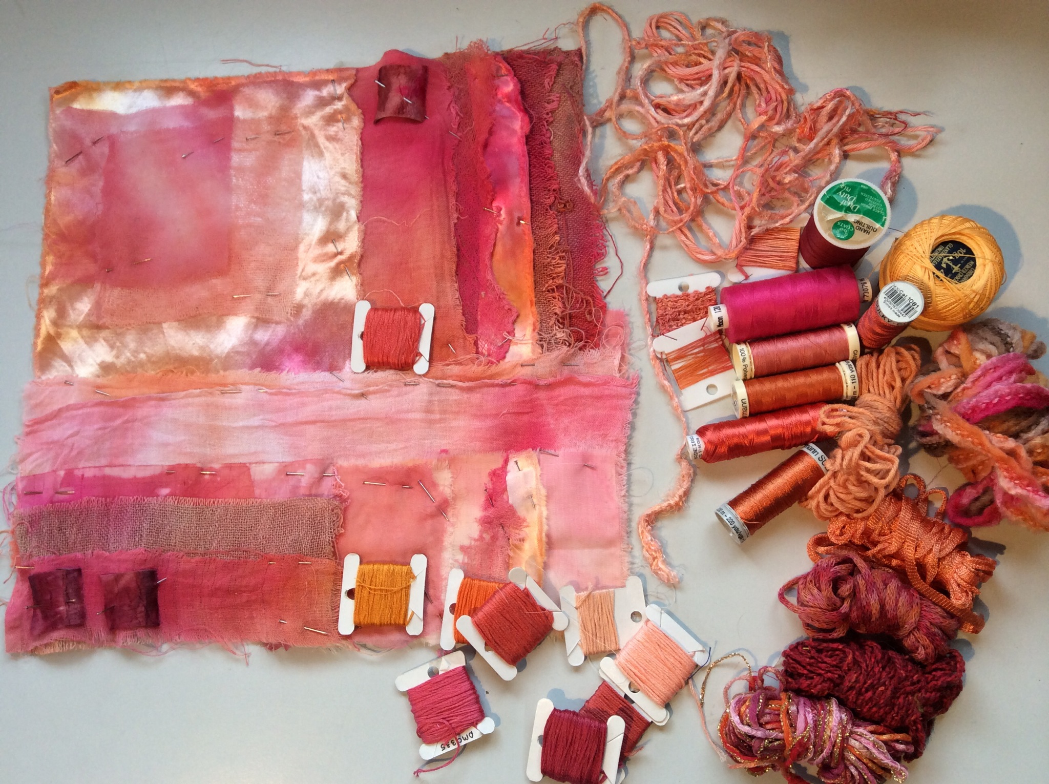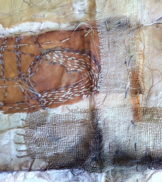 I have just started piecing some of the dyed natural fabrics from our last Experimental Textiles weekend. I love this stage, arranging and rearranging bits; it’s a slow movement. I’m going to enjoy playing musical chairs with this over Christmas.