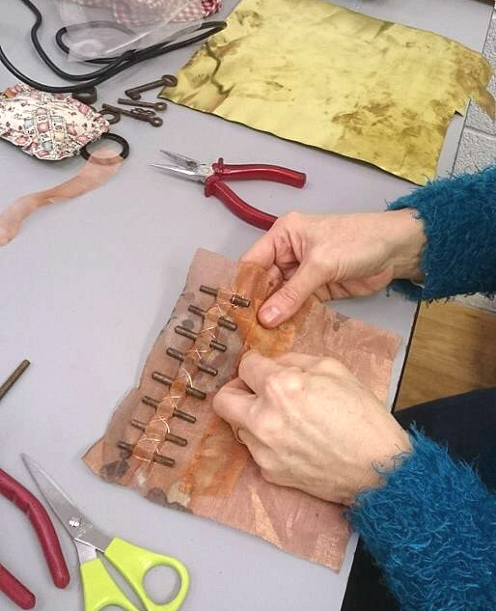 We spent most of the morning discussing and admiring homework from the group – this time was amazing. Again, have a look on Kim’s Experimental Textiles blog. I get so much from these discussions and learning from the others, it’s a favourite part of the course for me and so inspiring.