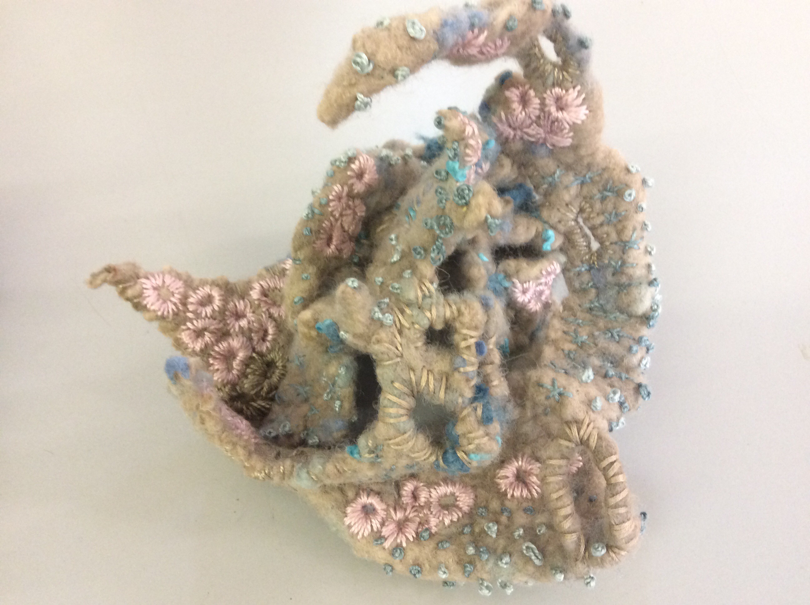 They are all amazing – the stitch that covers the surfaces is breathtaking. I have learnt so much from doing something that has evolved through play, and just engaging in the process. These pieces are so interesting because of the way people have worked. All of them started off as knitting.