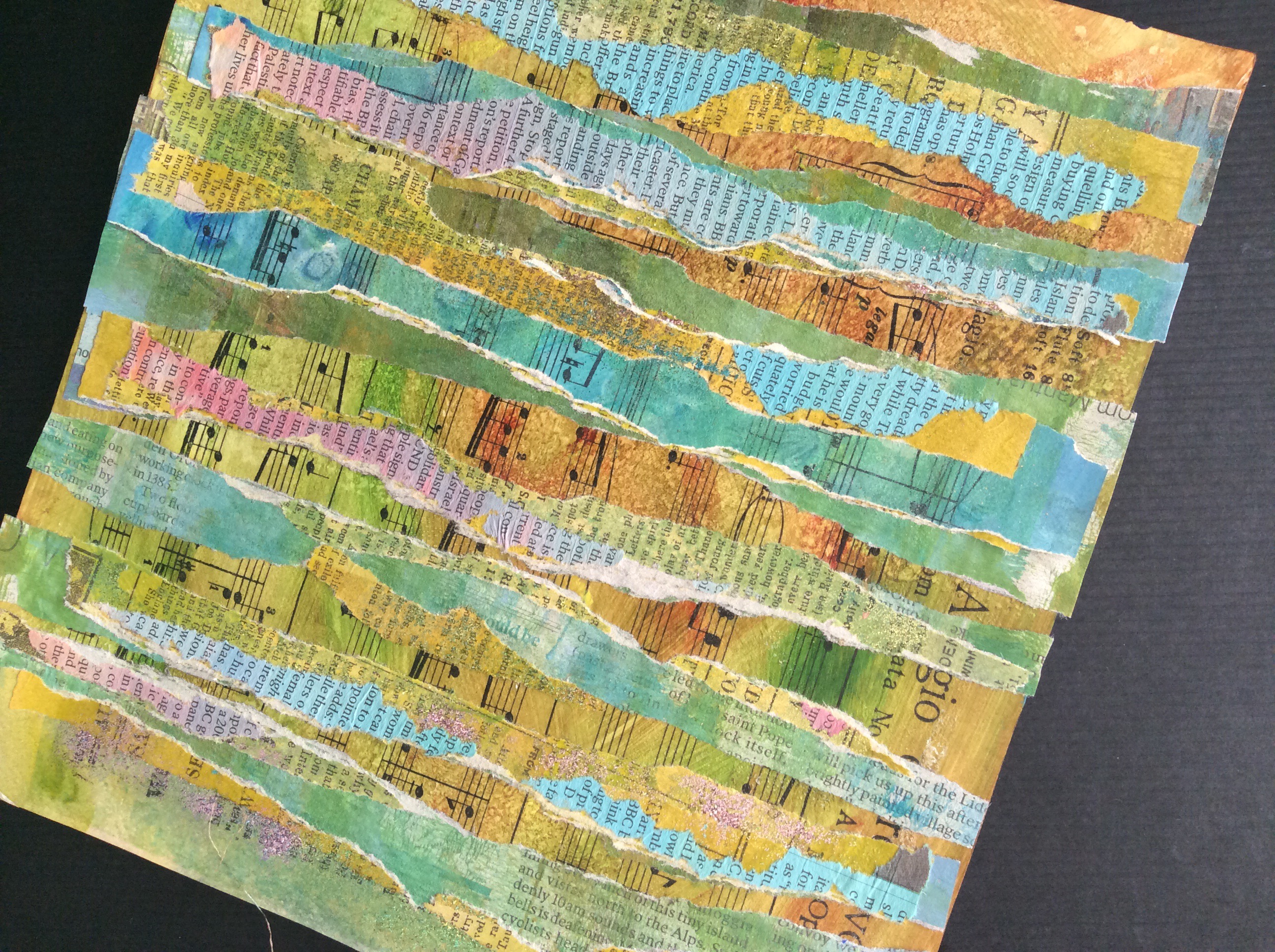 We began the weekend discussing our work and the work of other artists which was a great time to learn and to be inspired, and just to finish, we all had a go at the Pretties and Background method of layering up papers with Bondaweb. Nice playtime.