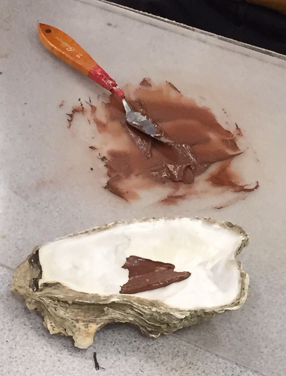 Our pigments weren’t dry but we used some of James’ to sieve through a mesh and mix into a paint which was placed into a very aesthetically pleasing oyster shell to take home.  Apparently these were used to hold paint in bygone years and I might just have to use a few as my palettes now.