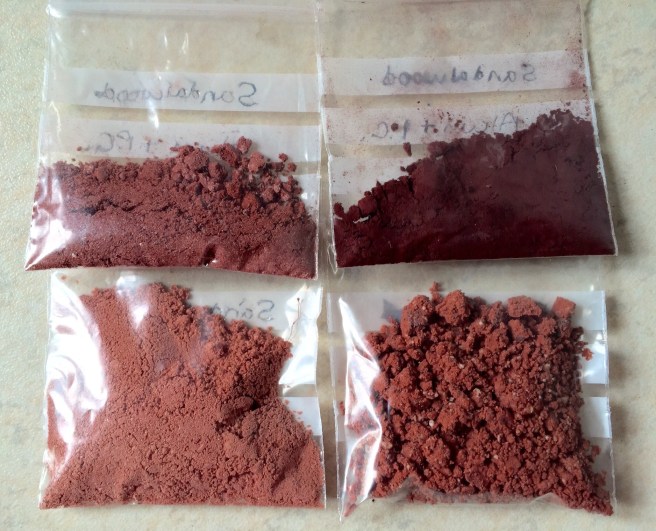 Well, some almost forty years later, who knew I would see this actually happen in a useful-to-life context!   Happiness.  So we slung together some alum (acid) and potassium carbonate (alkali) with the dye and ‘Lo!’ another way to get a pigment to form without the white of the chalk or gypsum.