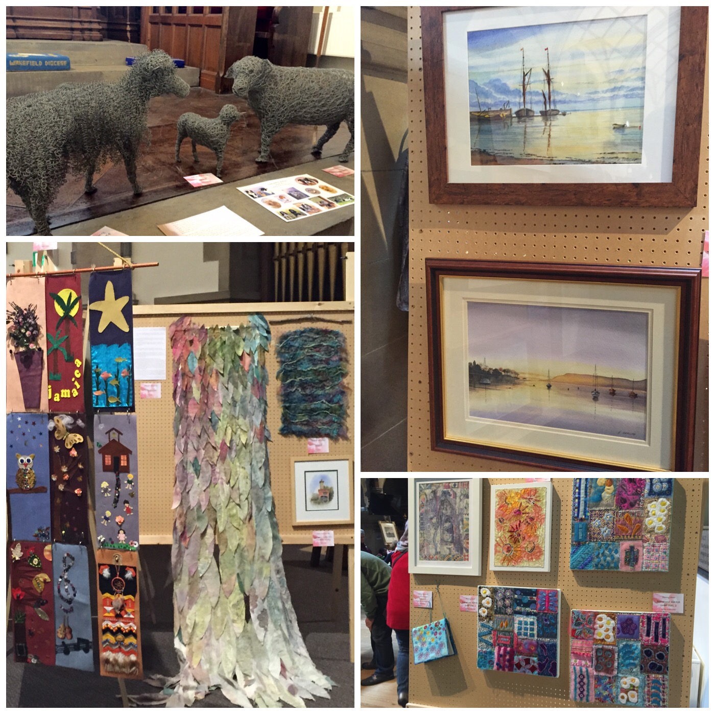 Today, I helped again at our local art festival. It’s a lovely mix of art and craft, live music and homemade cakes and teas.  I took my feathers along, and you might just recognise the hanging next to them. ‘The Thing’ has gone back to 2D so that I can hang it in my shed.