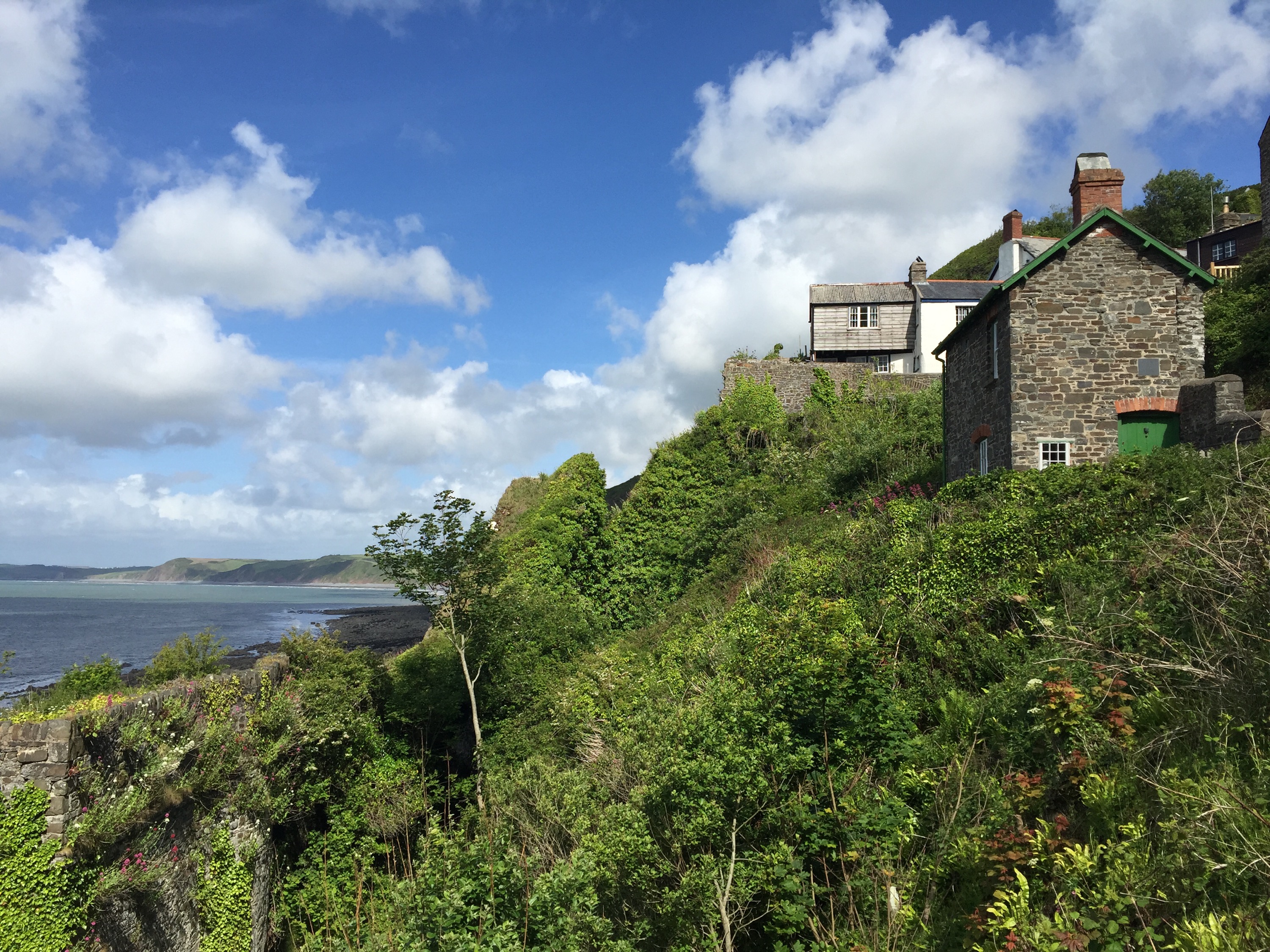 I have just spent a lovely two weeks in Buck’s Mills in north Devon. It is a small fishing hamlet accessed by a long and steep track down a wooded valley to a small beach with the remains of lime kilns and huge boulders and pebbles that mark this area.