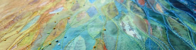 Since the summer school, I have had the usual million thoughts about carrying on with my wrappings. Should I? Why should I? How will I? I have had insights and meaningful little thoughts, a lovely email from a friend who injected some thinking about gyres into the mix, and chance to work in my sketchbook on ideas and trials to laminate fabric and paper successfully. ‘Sounds very artistic and fulfilling’ I hear you say, but in fact it has been a really messy, stressy time with moments oscillating (which is a pretty good word – needs using more) between highs and lows. It all culminated with a conversation with Him Indoors who told me as I was describing my wish for others to understand the ideas behind my very important work (cough!) that it was complete rubbish. ‘People’, he said, ‘see what they see and not what is in your head, and nothing you can do will change that unless you write an epistle to go with said important work.’