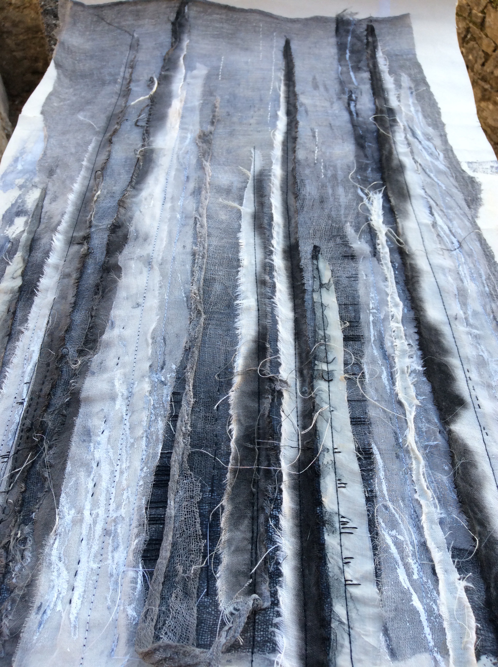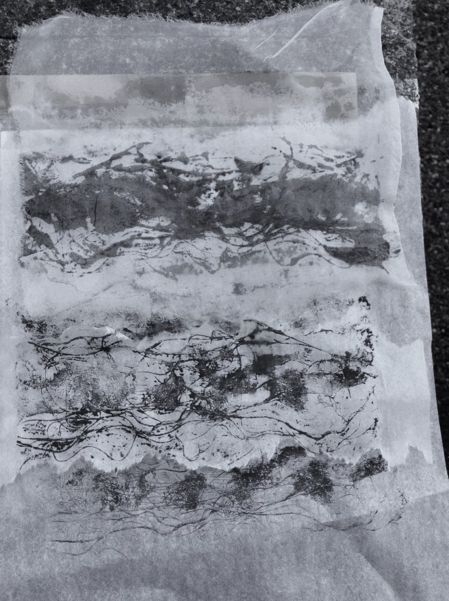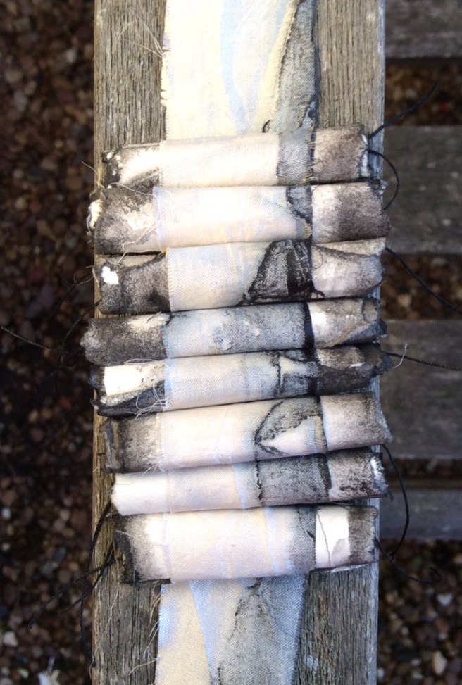 But now to arty endeavours and my ‘bag of unruly thoughts’ (India Flint) that I took away with me. My head is always less peaceful, although I’ve been trying hard not to think too much this week.   I took away materials for exploring ‘noticeable edges’ where I have limited myself to working in black and white.