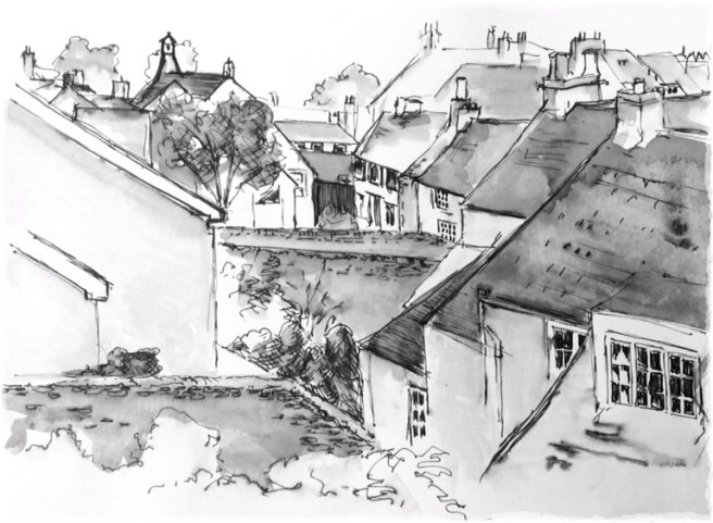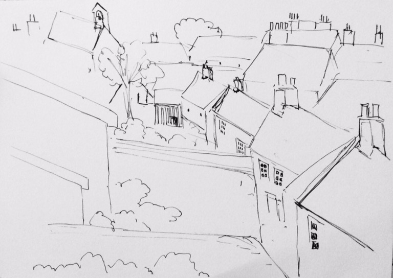 Out t’back of the cottage is a wonderful set of roof tops which caught my attention. Yes, it was me hanging out the toilet window trying to get a camera round the double glazing several times – sorry Bakewell. But it had to be captured in the light, and mist, and dark… I did a bit of sketching one morning (not out the toilet window I might add). I don’t really like sketching because I still believe it won’t look like it should do like so many of us, but I think I’m getting better and it’s just a very good way to understand what you are looking at. It gets into your brain and finger-tips.