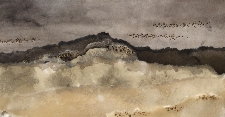 I started this at home which I have been stitching into. I wanted to explore the inked edges that I’d trialled in my sketchbook.