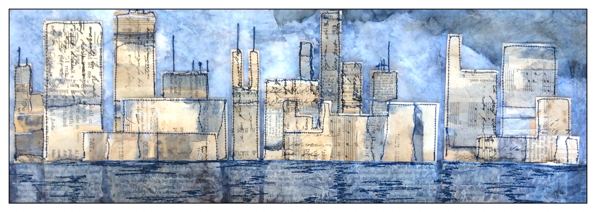 Here is part of a collage layer for the book covers I restarted, eventually.  I have finished a few now.