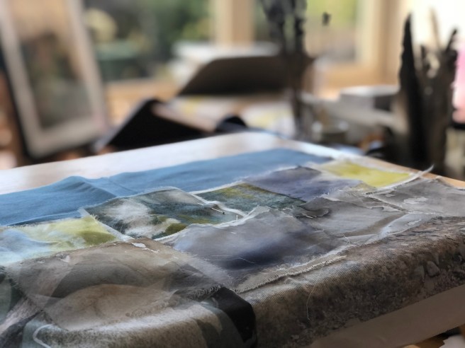 What I can show you is how smaller intentions change naturally as we work. I was creating sky yesterday, and once dry, I realised that some of these pieces needed to be sea, not sky: