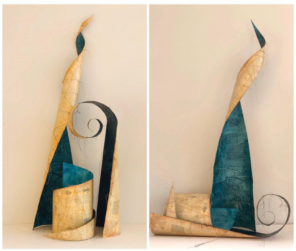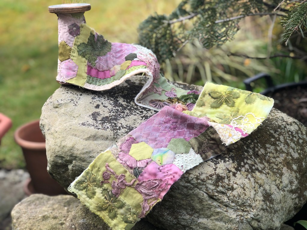 6. I enjoyed seeing your beautiful work here – the wonderful rich colours of the hellebore and bluebell pieces and the textures and shapes of the triangles. The ‘fleet’ has me intrigued to see how it develops because I love sculptural pieces like these, especially when they incorporate text.