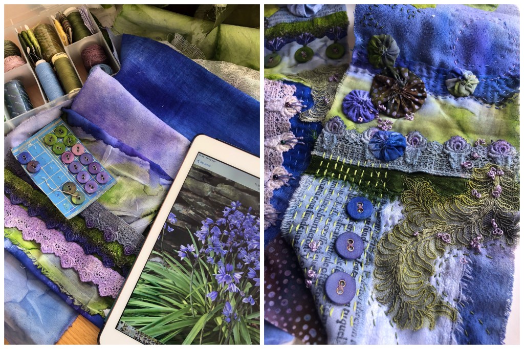 I adore the colours you are using for your sew4thesoul piece, particularly the bluebells. I live in a small village in Ireland. At the back of our garden there is a big old house. It was renovated last year and they had a digger in to get rid of the old scrap trees. The digger took the bluebells too and I now only have small clumps in the hedgerows. I am cheering them on.