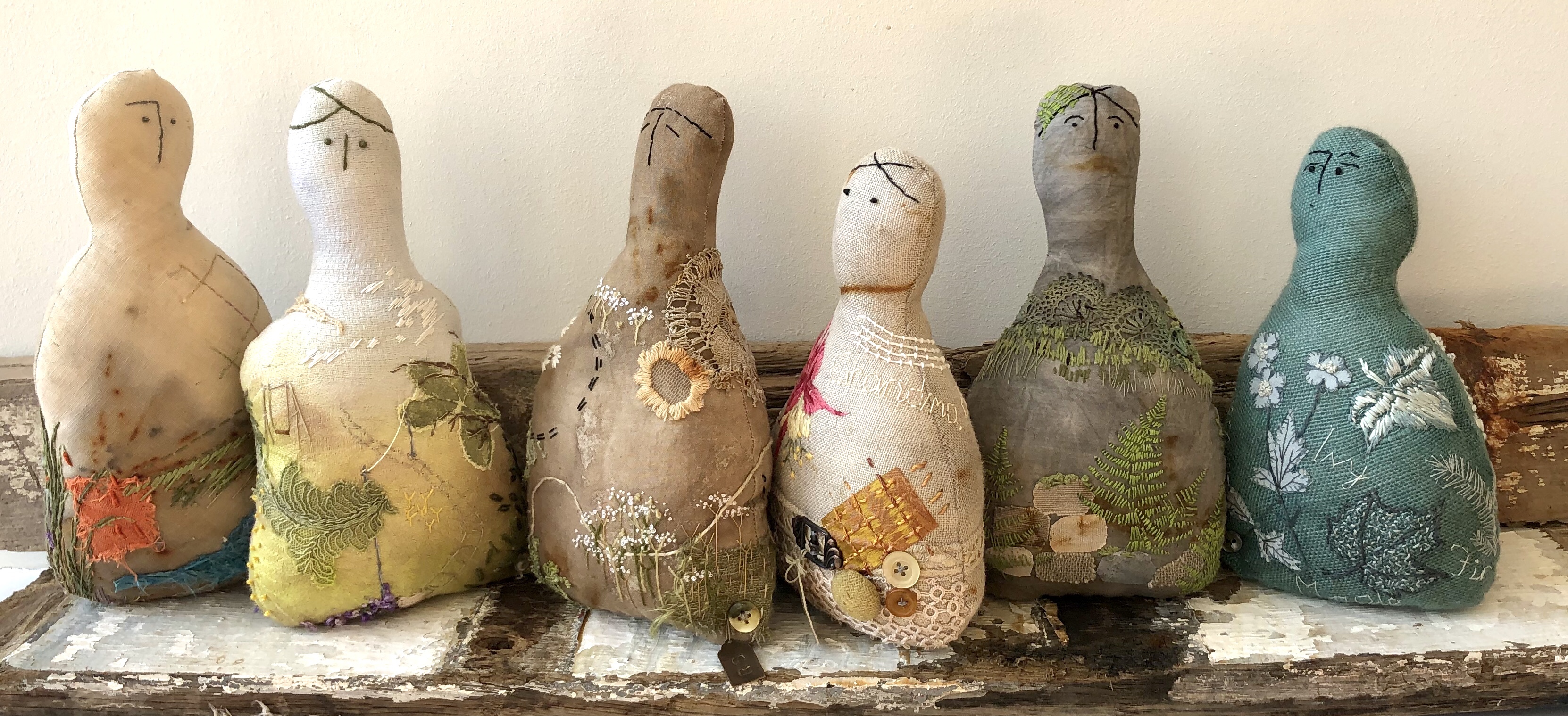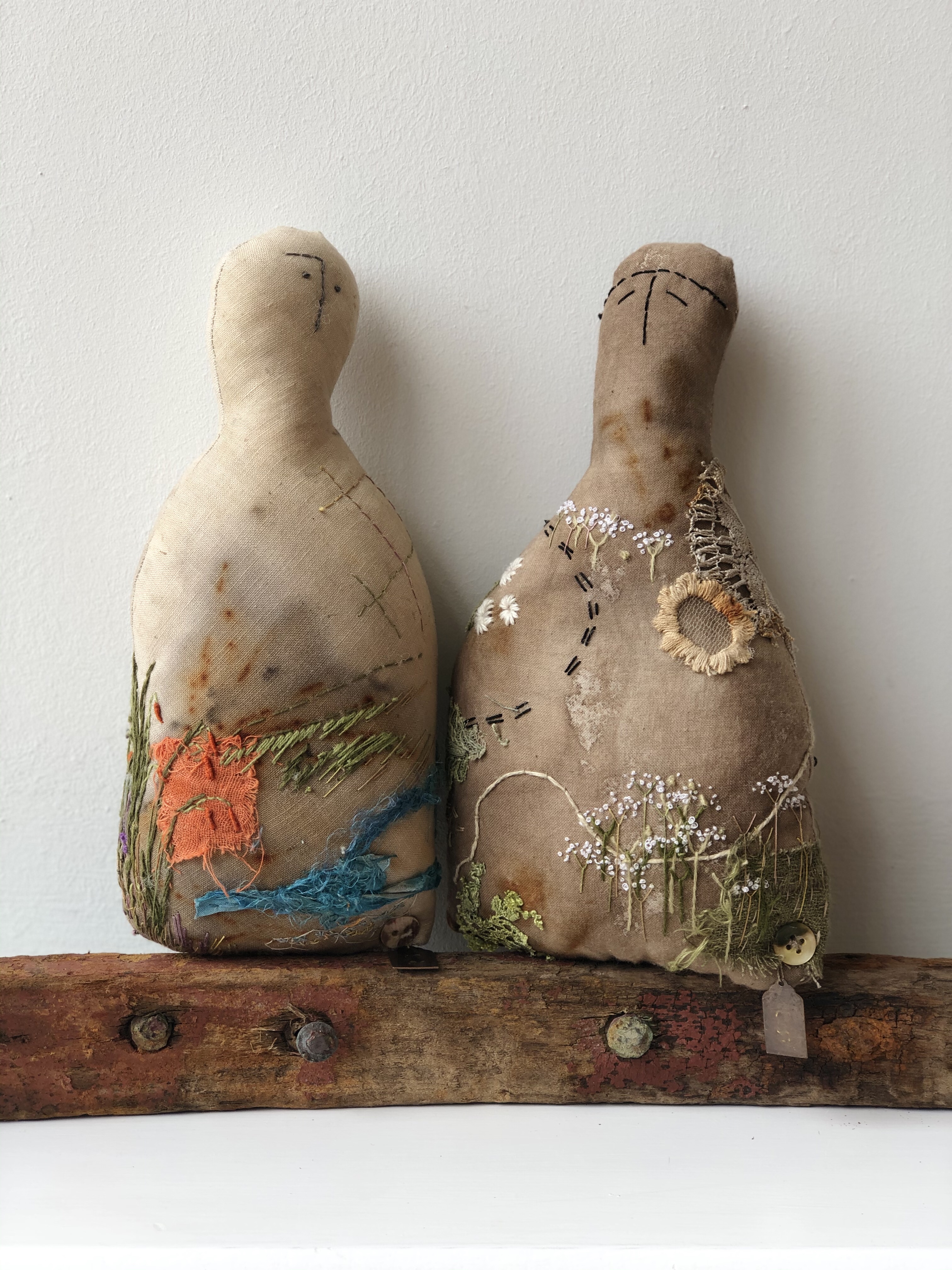 The kit has everything in it to make one for yourself or to give as a gift. There are a lot of suggestions and ideas in the kit and ways to create one simply or more elaborately. All the material for the bodies is natural and re-purposed, both it and a couple of blending threads are hand-dyed with natural processes such as using oak galls or tea and rust, and the stuffing is natural Kapok. There is also a small swatch of fabrics for patches or pockets, other threads that are pre-wound onto floss holders so that you can paint or dye yourself and a spectrum of coloured embroidery threads to use. If you have any problems, please use the contact page so I can see your email and get back to you.