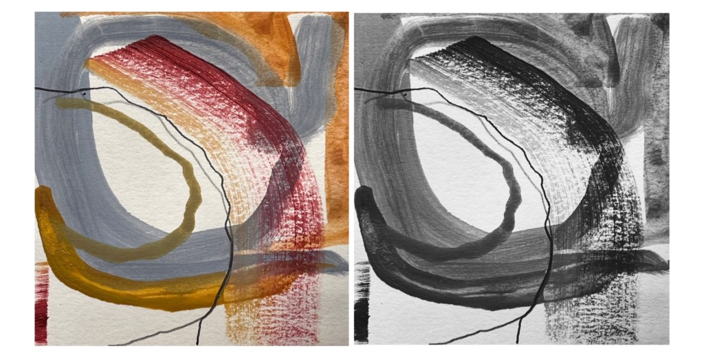 Probably the most valuable lesson has been variation or contrast. Using the black and white function on photo apps on tiny painty bits has helped see this a bit better: it’s just something I’ve never really explored and is about time I did.