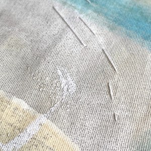 I started with some under layers which then stiffen the fabric making the next layers of paint easier.