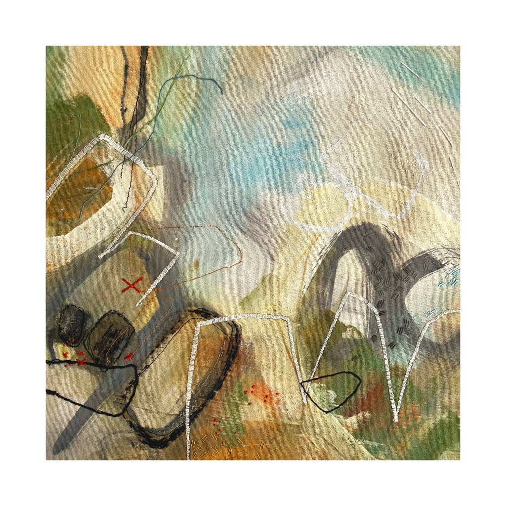 Acrylic and stitch on muslin, 20×20 cms