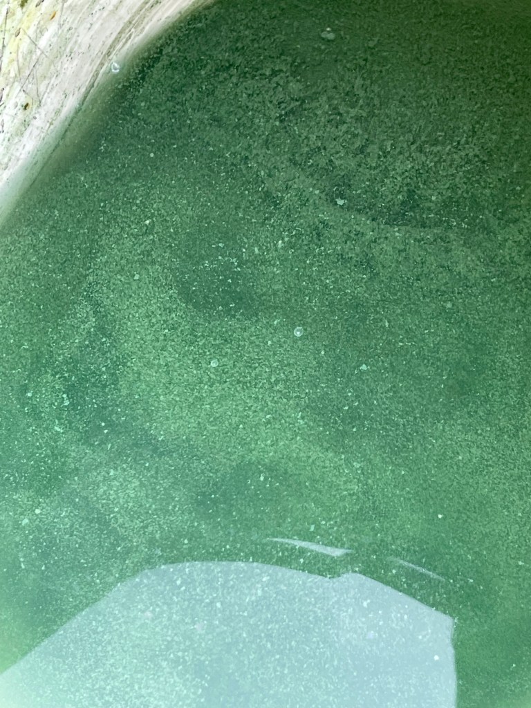 I wish I had a photo of the paint before I added the powders. It was very opaque with several months’ worth of paint in it. This is after I had added them, I gave it a swish so you can see the particles. You need to leave it a while or overnight to settle.