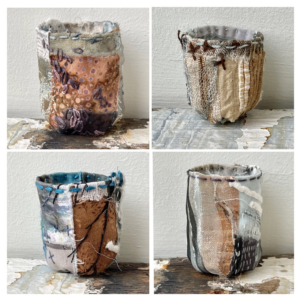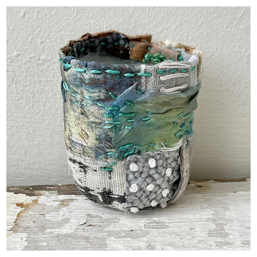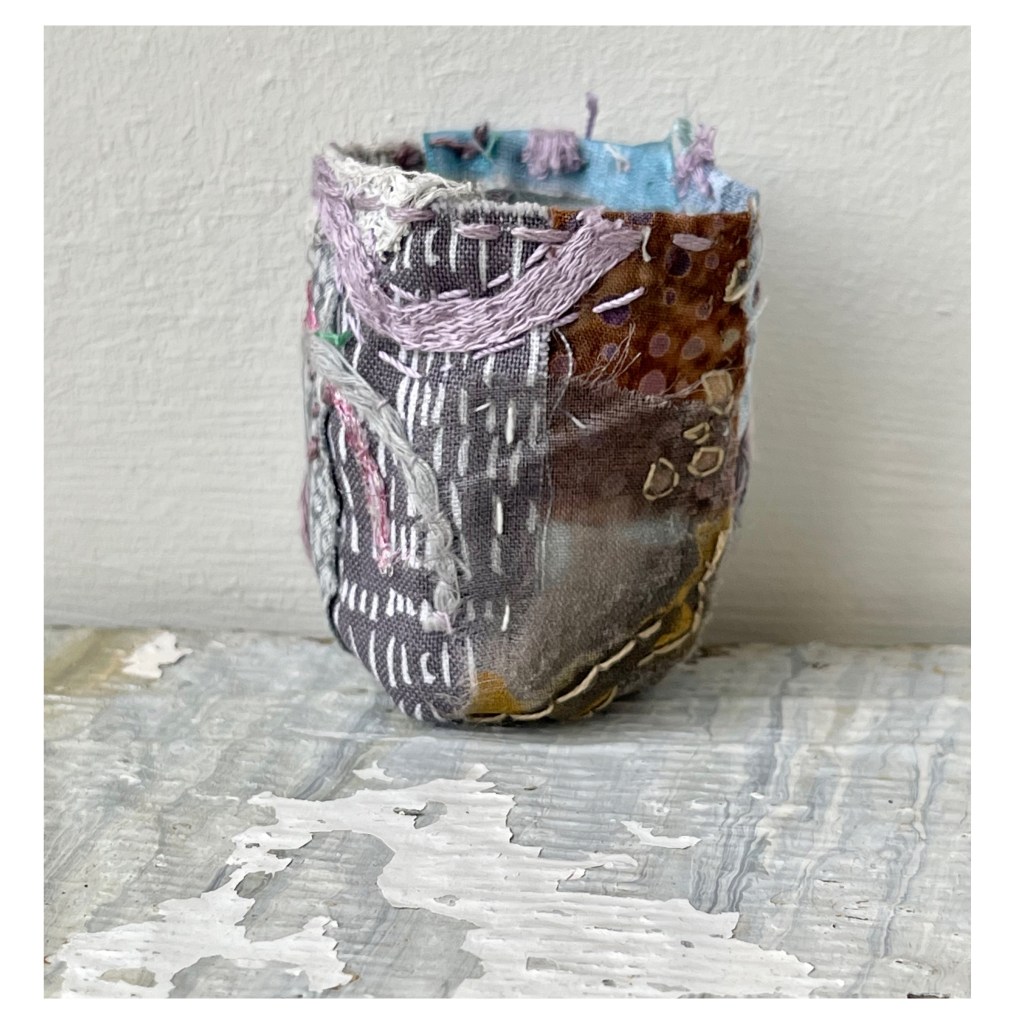 But… we had a very cold snap in December which happily coincided with some wintery slow-stitching. It’s always particularly pleasing to create work which directly reflects the current moment and although I had planned a winter set of Stitchpots, serendipity obliged.