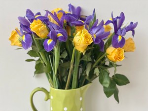 I’m also enjoying painting.  This was an art group challenge to respond to a Spring still life – ironically we couldn’t meet because March did what it often does and threw us a few days of deep snow!!
