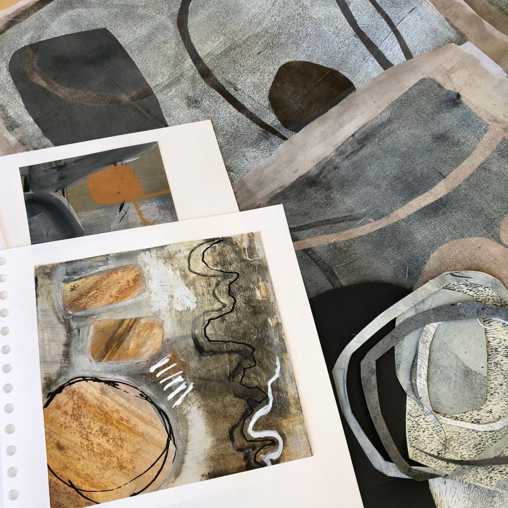 ◦ Every response could be fresh and different as I assembled the individual papers and surfaces. This speaks deeply to my arty soul; lots of textures, layers, treatments, materials…synthesis. I could do quick painty bits and very slow laborious hand-stitched parts as I want. There is something exciting and creative to me about working this way, it’s like experiencing the fresh discovery of a gorgeous piece of wall or colours stone out on a walk as each section is made.