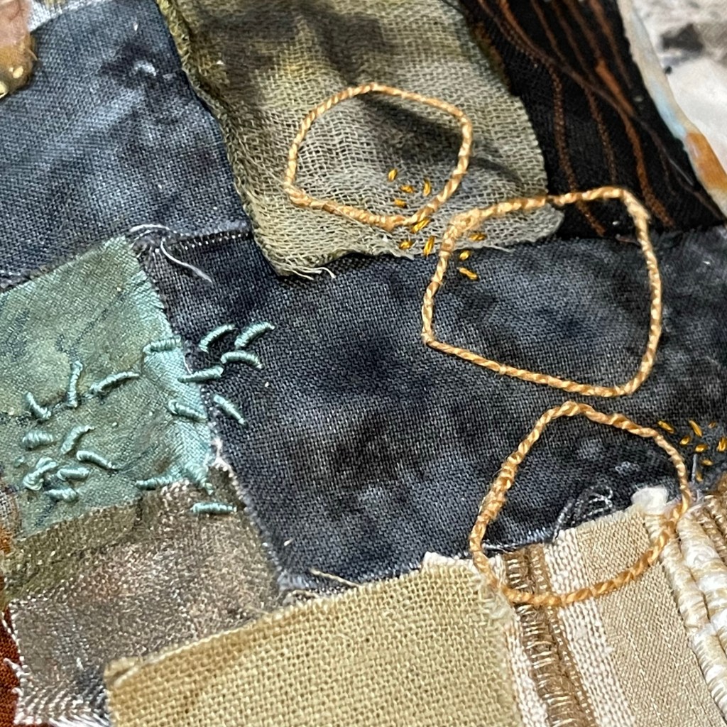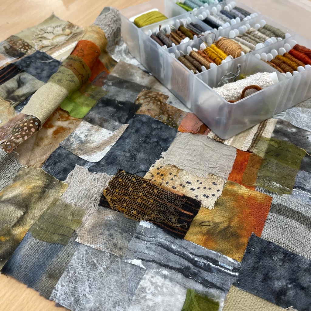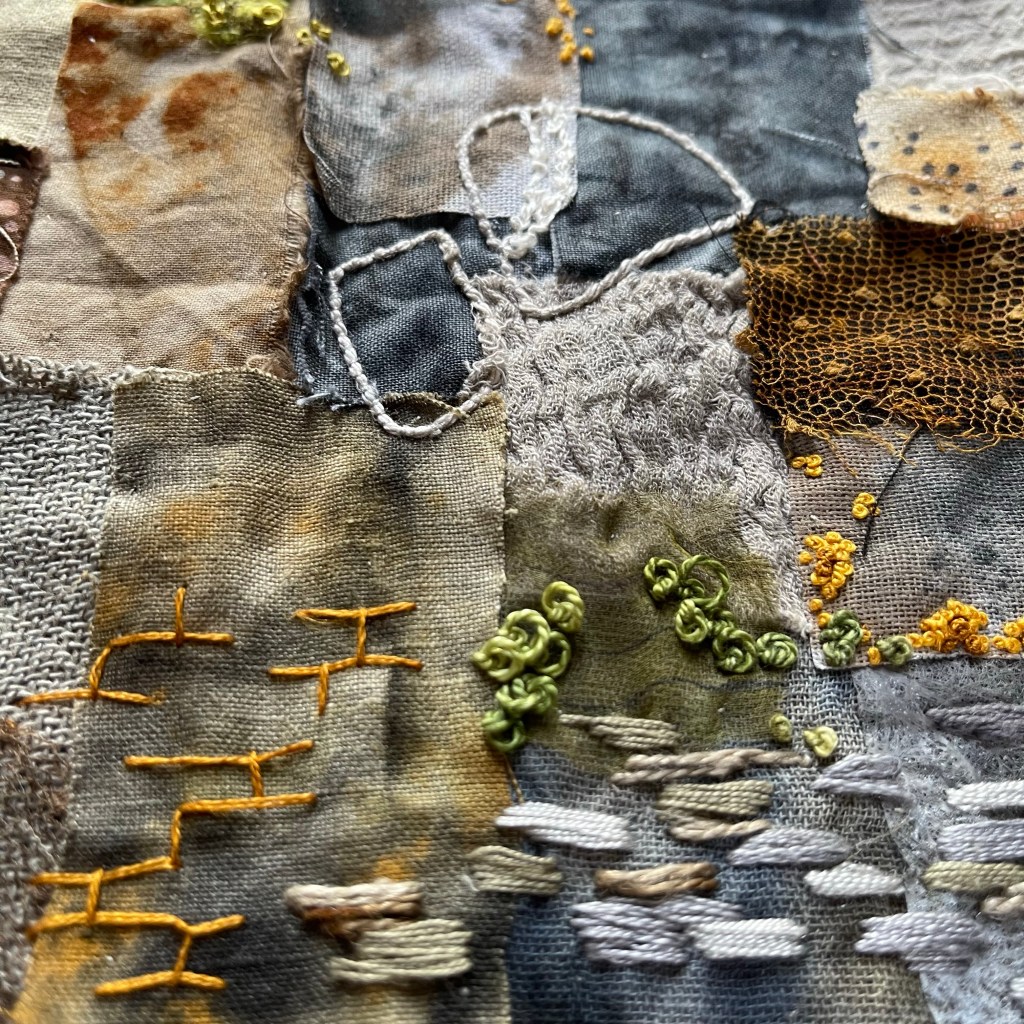 I wanted to take some stitching away recently so I’ve started another #stitchpot cloth. After all that brightness on the table, I’ve returned to more muted colours. It’s struck me that I’ve never done a little set of pots about my love of stone so that’s what I’m in the middle of right now. It would be rude not to! They will probably be ready for September’s post.