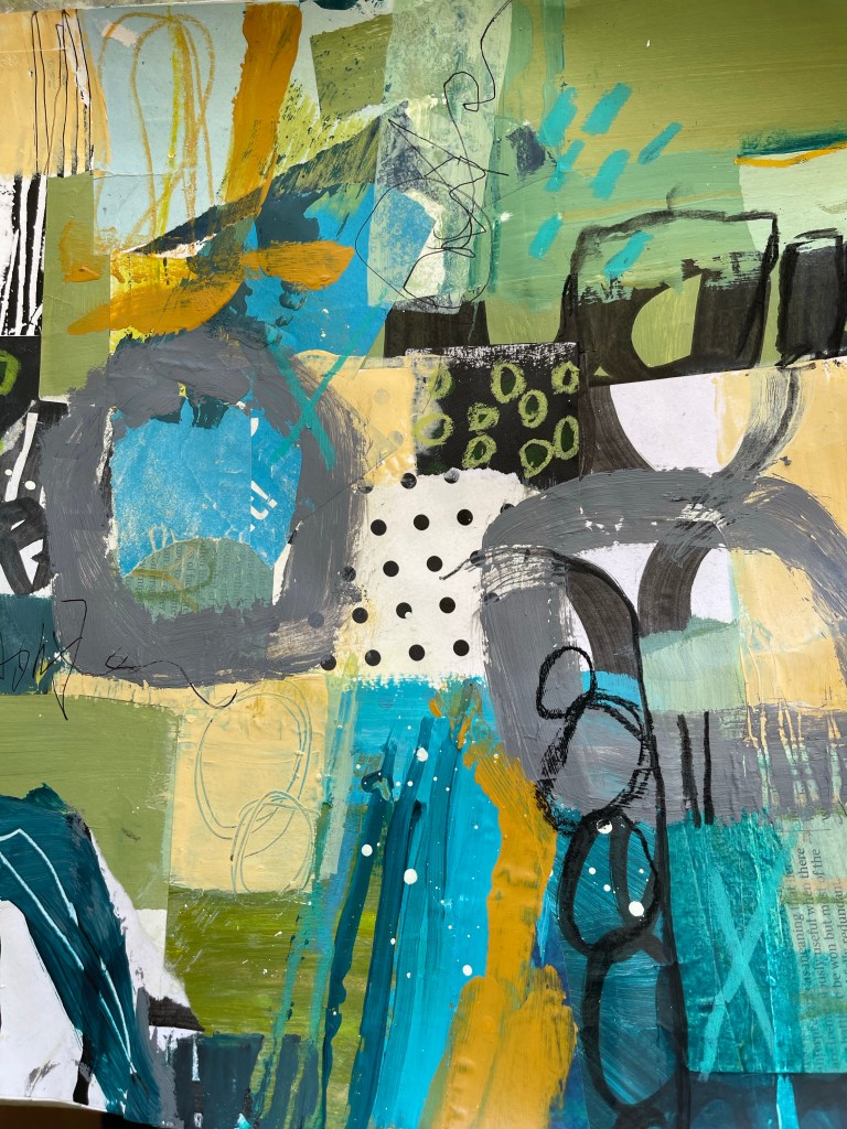 I’ve also been playing around with collage as part of a little daily challenge with a friend. I know many artists use this as an exercise in supporting composition so I was curious to see what it offered in terms of how my own decision making, playfulness and intention worked together. I think whilst I enjoyed it, I’m not sure it offered me too much other that cementing some preferences that I’m aware of? Maybe I just didn’t push myself out of my comfort zone enough? – I love seeing other people’s collages on social media but I got a bit bored by my own! Anyway, my takeaways were: