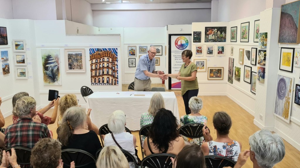 I’ve also been part of our local art exhibition and stewarding a couple of mornings. This is the first year I’ve been with Huddersfield Art Society and I’m starting to settle into painting and enjoying the influence that has on textiles and vice versa. I was delighted that ‘Adagio’ (see previous post) was selected as the choice of entries for First Time Exhibitor. There are so many beautiful and different works on show until the end of September – I’m hoping to post a link to the exhibition on-line in due course.