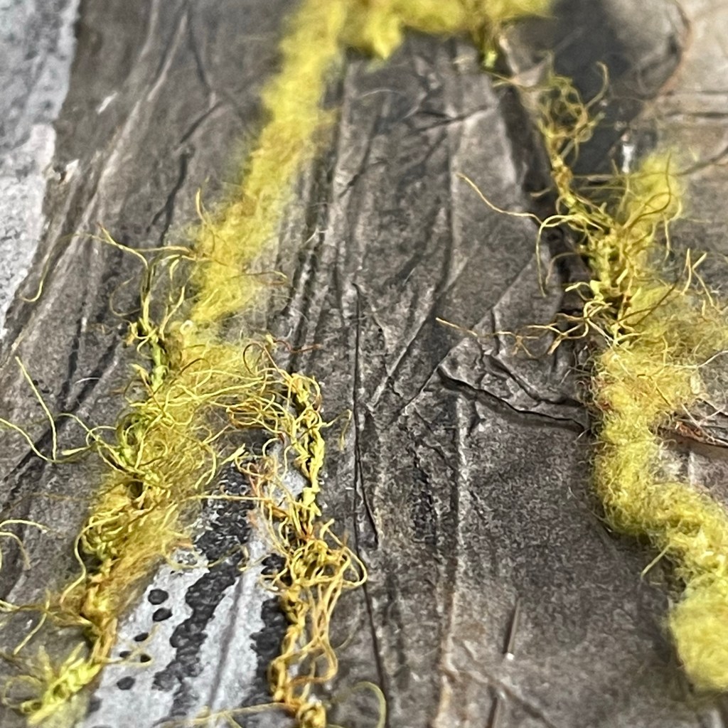 I’ve been working on different representations of moss for a while. The most time-intensive of which is bun moss. I’ve made it by stitching tightly looped embroidery threads and cutting through but it takes SO much time it’s ridiculous!