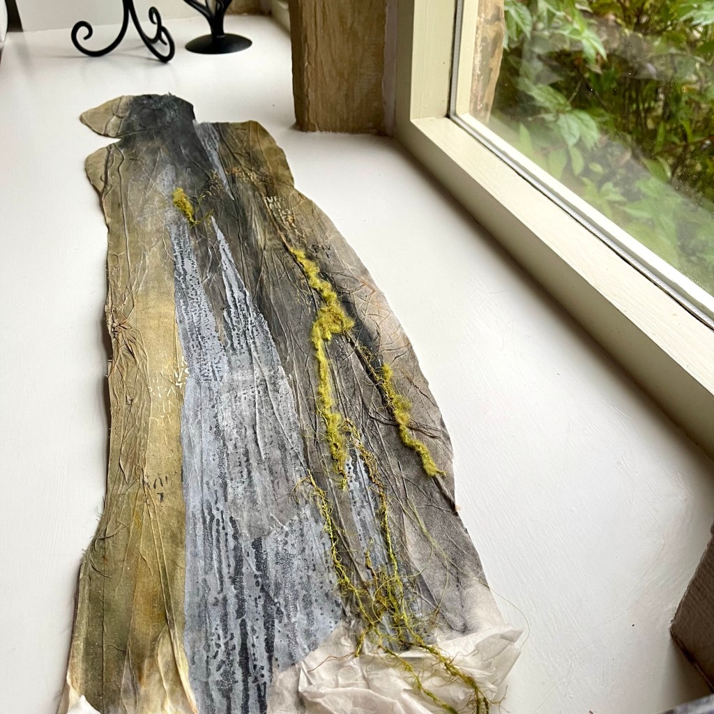 I’ve also had the privilege of talking to a friend about braille and she has leant me a machine to try. The Song of the Stone Wall (on which my piece is based) is a poem by Helen Keller who was deaf and blind and it’s such a lovely opportunity to experiment with including some of the lines of her poem in braille. I’m not very good and I’m sure there will be plenty of mistakes but I’m loving that I can at least try. I’ve yet to see if applying paint will make the bumps in the paper disappear a little. I may need to paint some paper first – it will be an experiment!