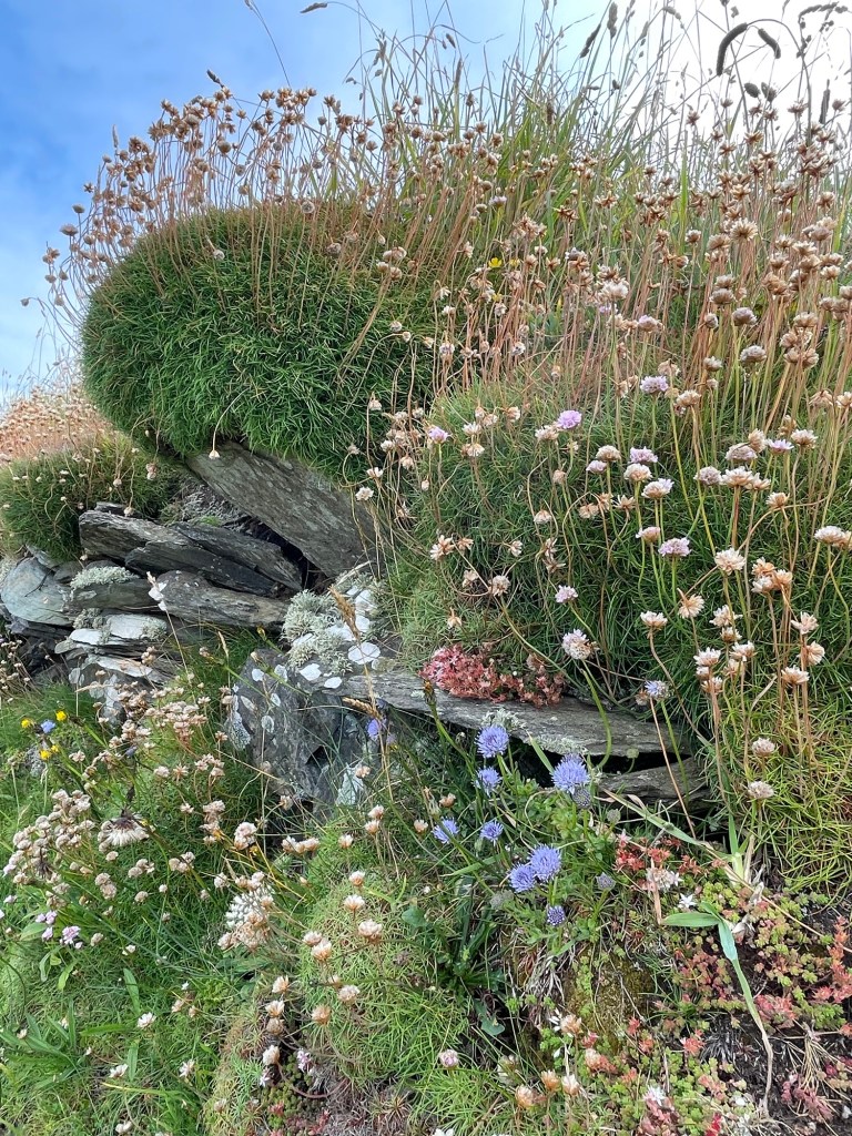 We had the most amazing waves due to the unseasonably cold and windy weather in the UK at the moment. The amount of bright white from the surf and breakers was simply stunning. The sea is also such lovely colours down here compared to the north of England where we live. And the clifftops are still covered in an abundance of flora along the stonewalled paths and in the fields. It fills the soul.