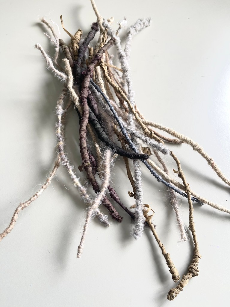 We are off to the sea shortly so I’m hoping for some coastal inspiration for another landscape nest. I have a bunch blues and turquoises winking at me in my yarn basket and a growing a collection of wrapped wire twigs…