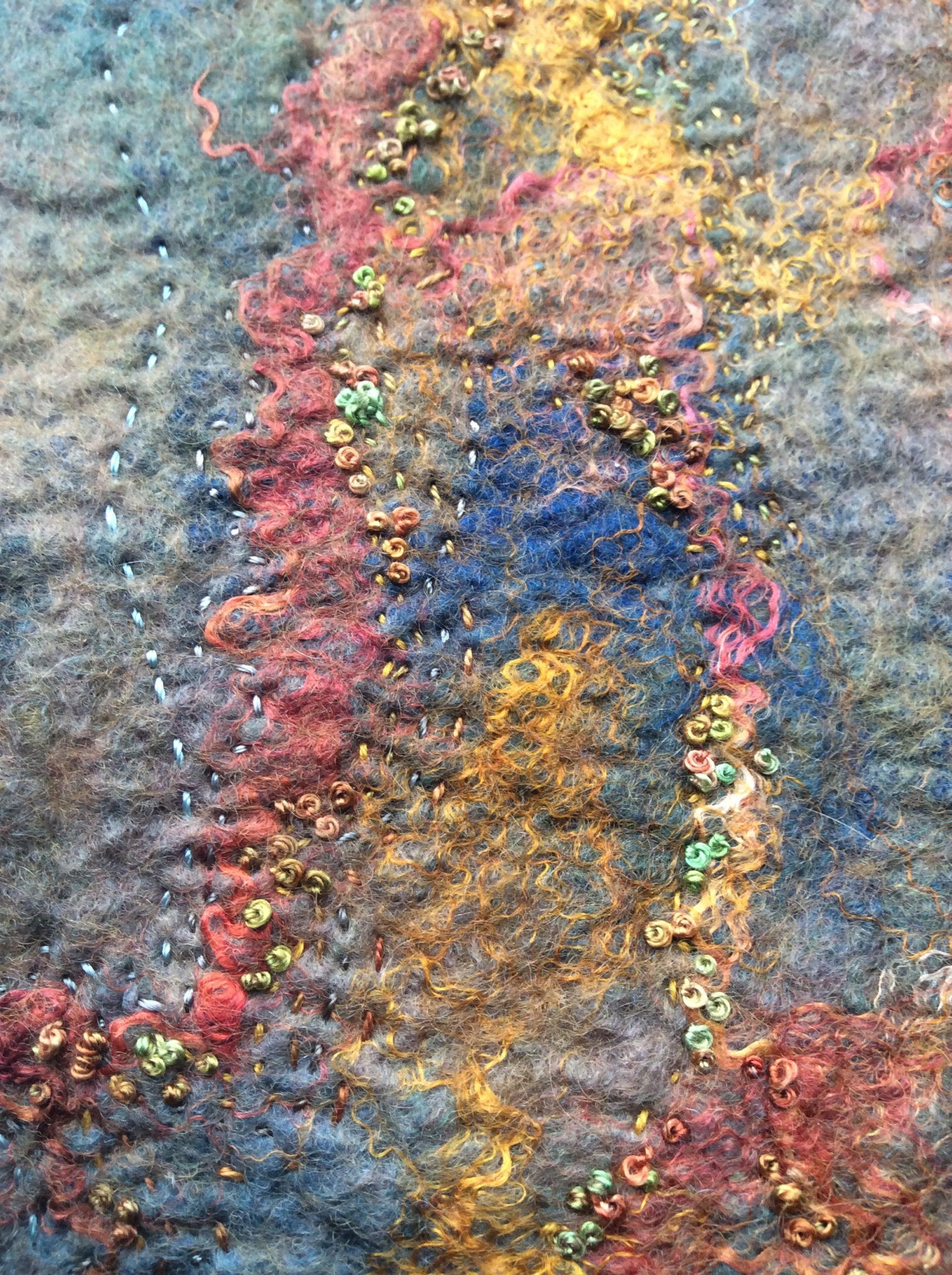 Well, I’ve done bits and bobs to things and not really finished anything yet, so here is a quick post but I hope to change the felt into a vessel at some point. ‘The Thing’ has undergone some stitching but I’m not done with it yet! Looking forward to a weekend of dyeing coming up! And probably the odd bit of cake…